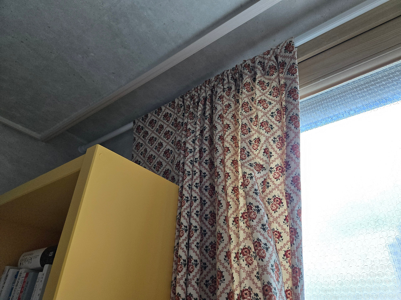 그런데 커튼 봉의 가운데 부분이 휘어지는 듯 내려앉았다. 창문 폭이 길어서 봉이 지지하는 힘이 분산되었기 때문에, 그리고 천이 두꺼운 커튼을 두 장이나 달면 무게가 상당하다는 점을 미처 고려하지 못했던 것이다. 이런 여건에서라면 봉 형식이 아니라 레일로 커튼을 달았어야만 했다. 사실 커튼을 고르면서 봉, 레일 형식이 있다는 것도 처음 알게 됐던 나는 이렇게 예상치 못한 부분에 대해서 너무 당황스러웠다.