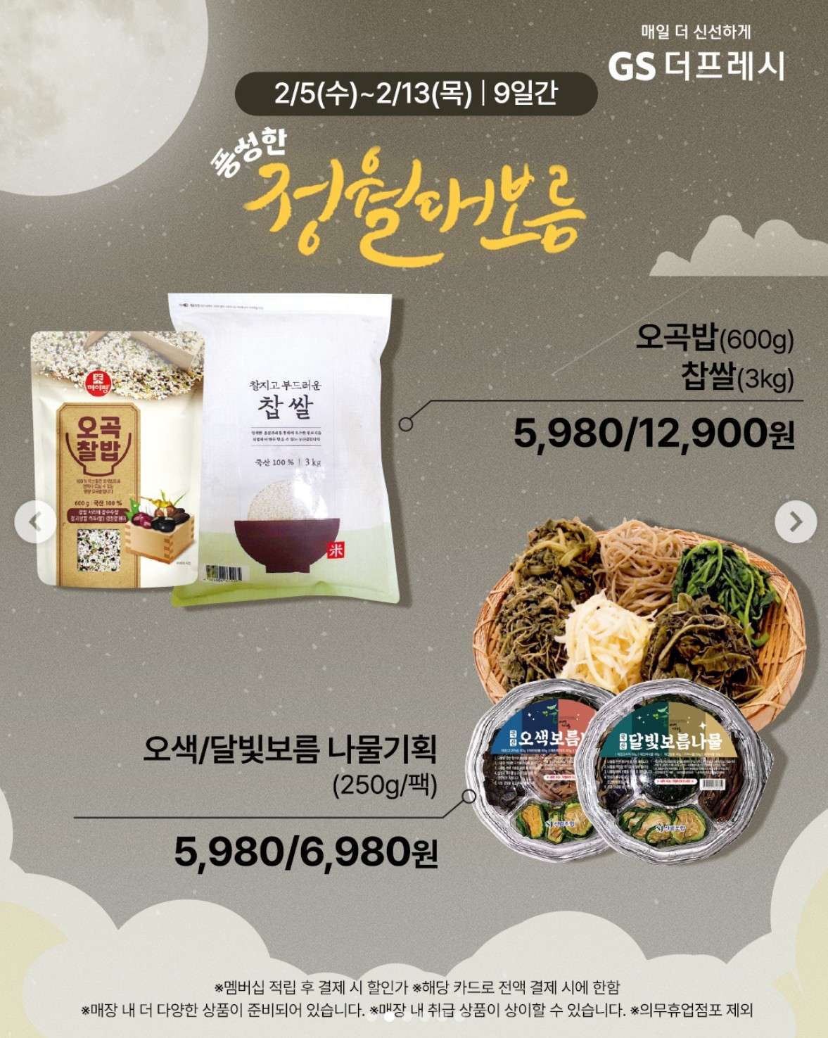 올해는 좀 쉽게 가기로 했다. 이사 온 집 옆에는 시장도 없고 마트에선 잡곡을 조금씩 팔지도 않는다. 대신 마트에는 오곡밥 키트랑 대보름 나물 팩을 팔고 있었다. 다 된 걸로 사서 그냥 차리면 되는 줄 알고, 잘 됐다 싶어서 얼른 구매했다.