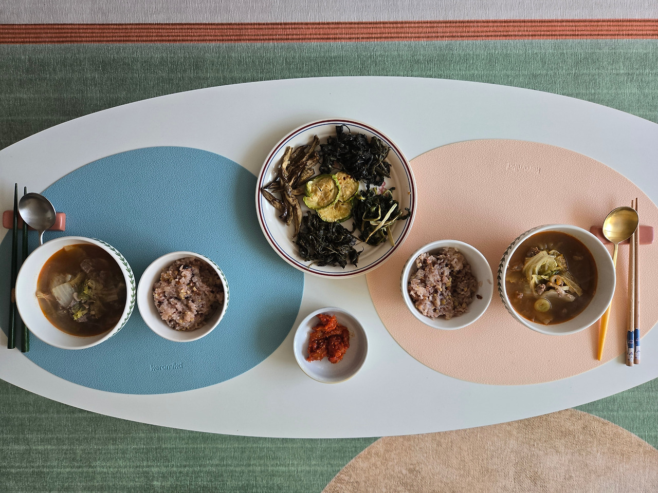 우여곡절 끝에 정월대보름 밥상이 완성됐다. 오곡밥은 콩도 없이 찰기만 가득한 잡곡밥이고, 나물반찬은 아홉 가지를 하기는커녕 마트에서 대충 산 모둠 팩으로 급조한 것이다. 아무것도 모르는 신랑이 이게 정월대보름 밥상이라고 생각하도록 하는 게 좀 미안하기도 하다. 그래도 밥과 나물, 맛있는 국이 있는 어엿한 밥상이었다. 솔직한 우리 신랑은 나물은 먹는 둥 마는 둥 하며 연신 국이 맛있다며 칭찬을 한다. 그래, 맛있으면 됐지!