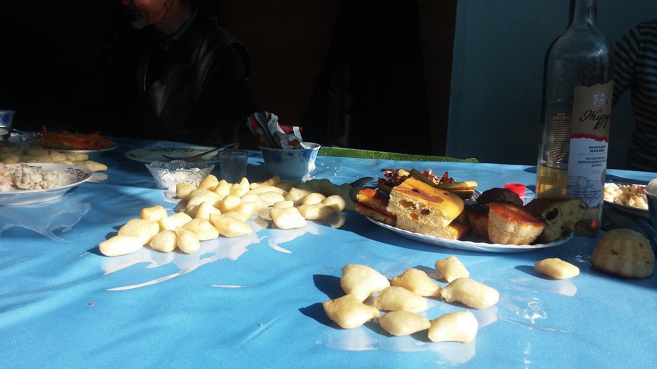 이곳은 잔치를 할 때 각자 먹거리를 맡아 해오는 문화다. (#potluck #포트락파티) 일단 난(빵), 보르속(튀긴 빵)이 기본적으로 깔리고 쁠롭(고기야채와 함께 익힌 쌀)과 샐러드가 단골메뉴로 나온다. 그리고 각종 과자, 사탕류로 장식한다. 나도 초콜릿과자 한 봉지(1kg)를 사 와서 테이블마다 나눠 담았다.