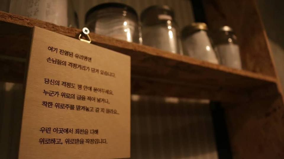 이곳에 오면 걱정 쪽지를 남기면 알지 못하는 어느 누군가 그 쪽지에 답장을 남기고, 서로 모르는 사람들끼리 ‘이주의 걱정’을 삼삼오오 이야기를 나누기도 하는 그런 곳이다.