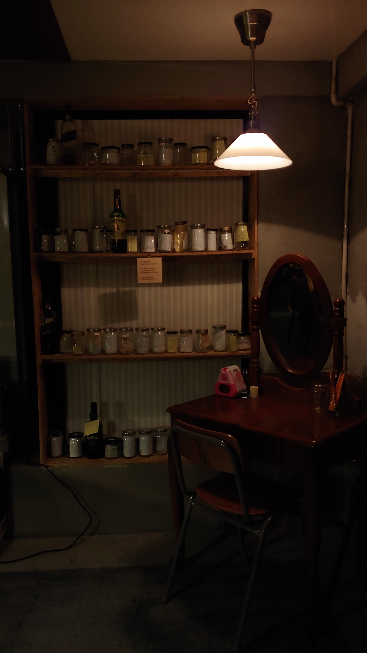 테이블마다 걱정을 쓸 수 있는 종이와 연필이 있었다. 이곳에선 걱정을 쪽지에 써서 유리병 안에 놔두고 가라고 말한다. 수많은 사람들이 남긴 걱정들이 각각 유리병 안에 담겨 한쪽 벽 코너에 빼곡히 진열되어 있다. 알알이 예쁜 유리병들이었지만 그 안에 울고 웃는 걱정들이 있을 것이다. 낮이 되면 미녀와 야수에 나오는 주전자와 컵처럼 움직일 것만 같은 살아 숨 쉬는 걱정이 담긴 병들.