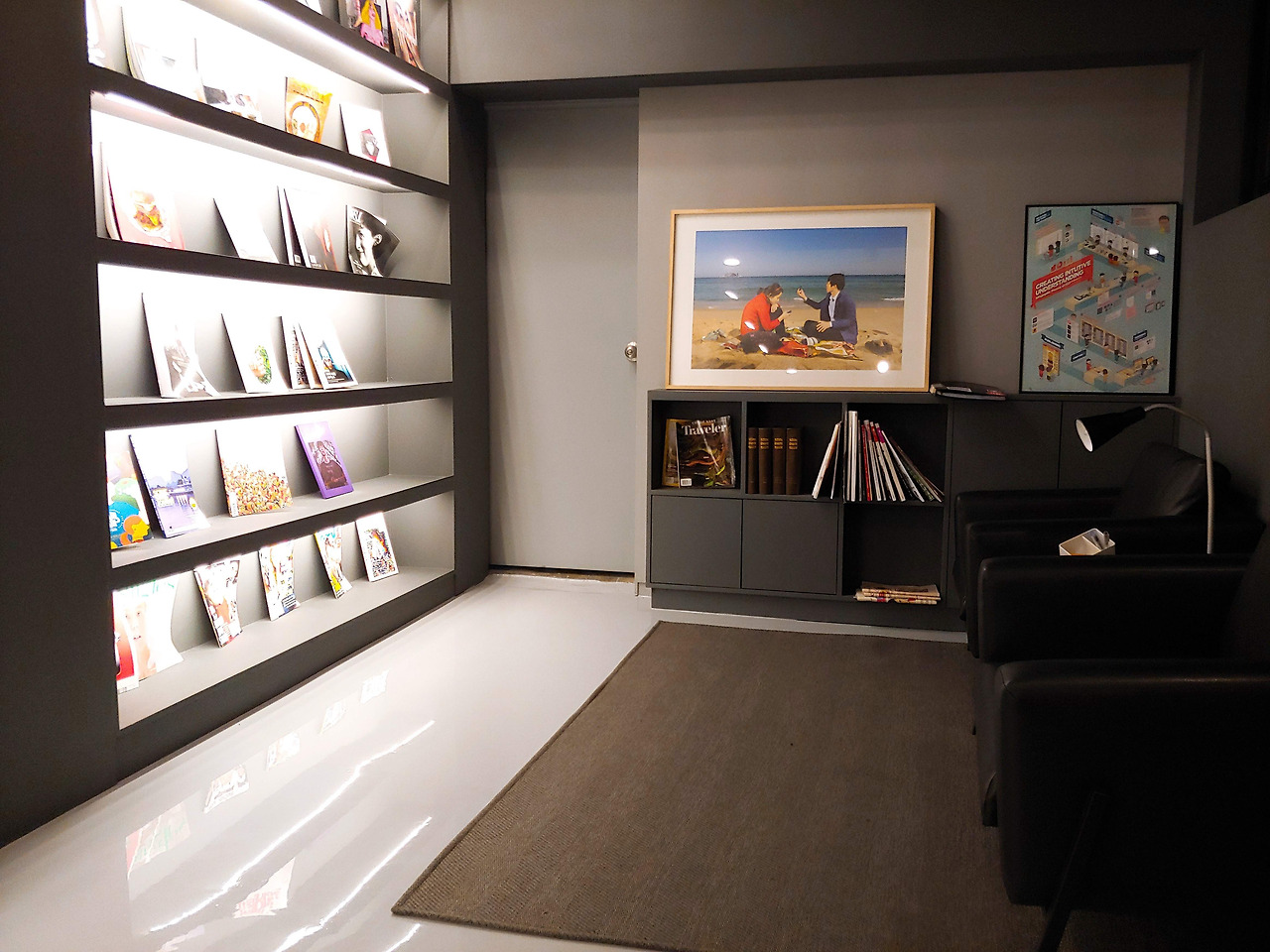 약 한 시간 동안 잡지 두 권을 정독하면서, 이곳의 매력에 푹 빠져버렸다. 그 매력 포인트를 꼽아 보자면, 우선 정말 다양한 잡지, 보기 힘든 해외 잡지를 구비해 놓았다는 점에서 질적 양적으로 높은 퀄리티의 콘텐츠가 그 첫 번째, 두 번째는 소파 또는 테이블에서 메모를 하며 깔끔하고 쾌적한 환경에서 잡지를 읽을 수 있다는 공간성을 들 수 있다. 세 번째는 뭐니 뭐니 해도, 주인장의 빼어난 큐레이션이다.