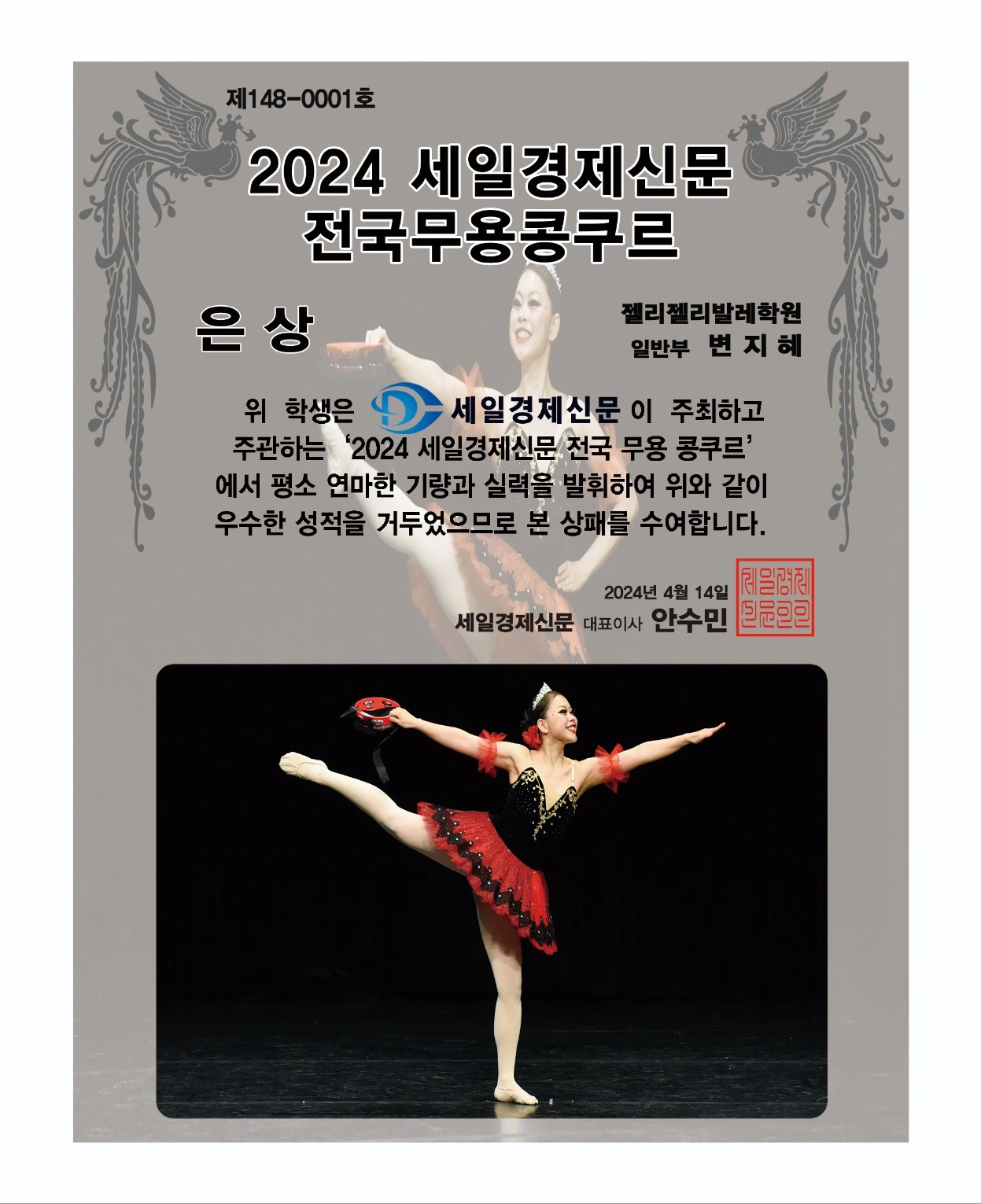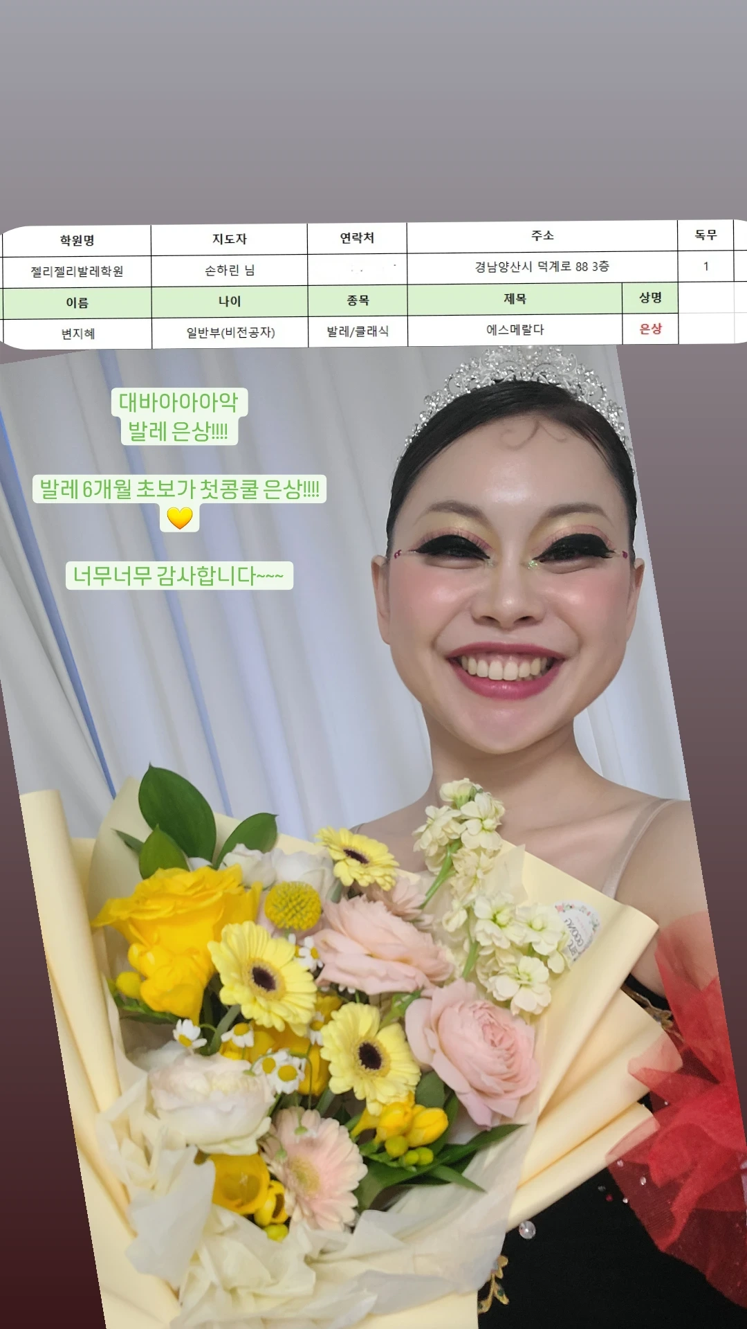 "지혜님 발레콩쿠르 은상 받았어요!!! 축하드려요!!!"