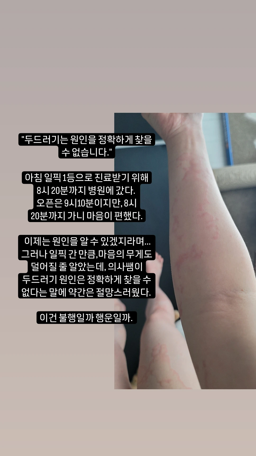 "두드러기는 원인을 정확하게 찾을 수 없습니다."