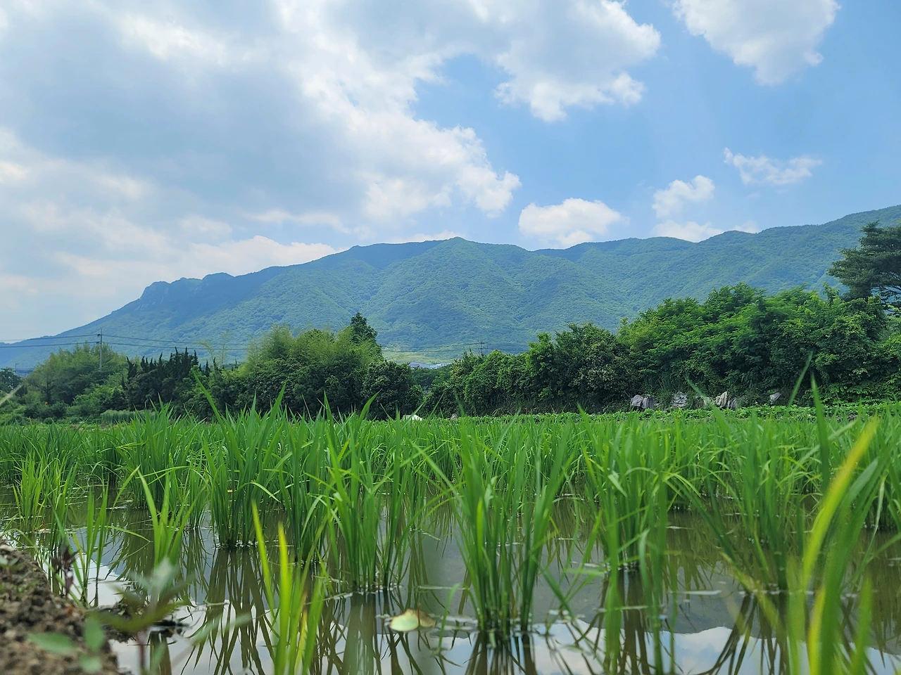 갓 모내기를 한 아기 벼들이 푸릇푸릇하다.
