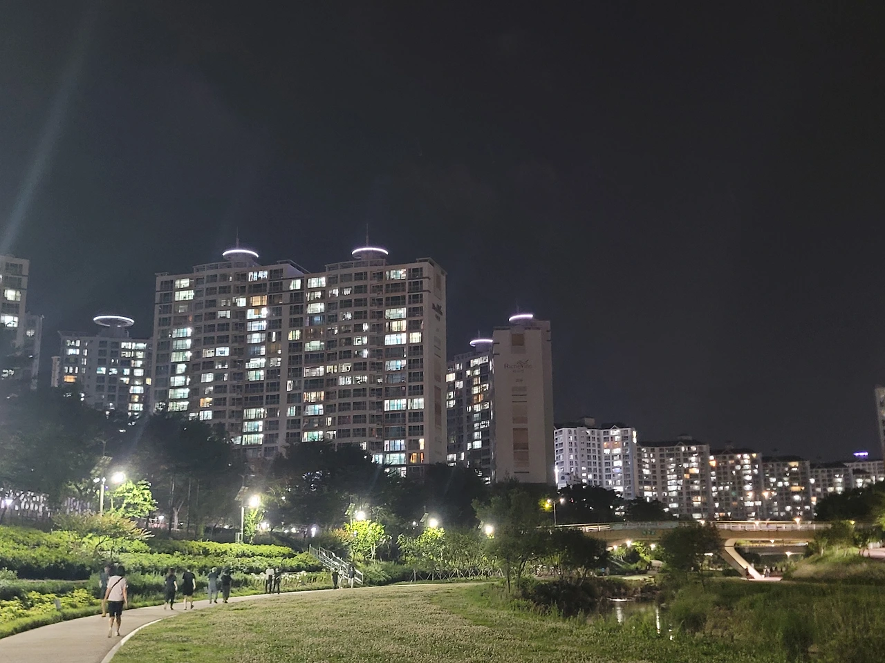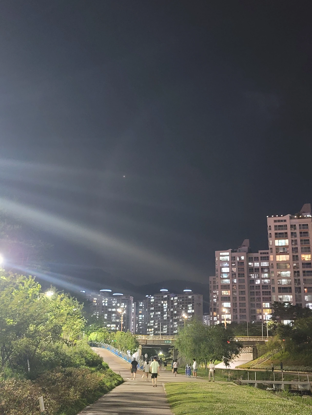 밤이 되면, 날씨가 선선해져서 그런지 강가를 걷는 사람들이 많았다.
