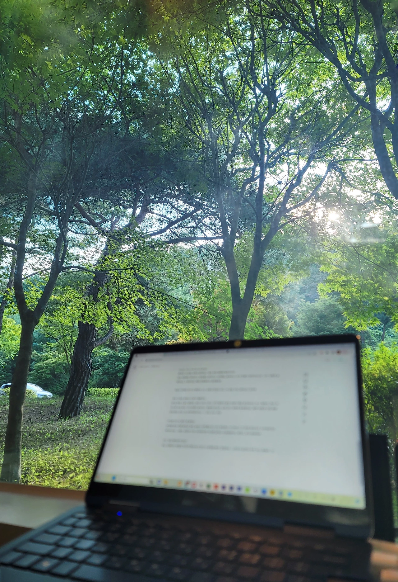 잠시 키보드에 손을 떼고 나무사이로 들어오는 햇살을 받으며, 눈을 감고 나한테 물어봤다. 내가 원하는 건 진정으로 뭘까. 며칠 전에 수술도 했지만, 일단 돈이고 뭐고, 돈이 얼마가 들던 건강이 제일 중요하다는 걸 느꼈다. 이번 연도부터 계속 생각한 단어였던, 마음 건강, 몸 건강. 계속 이 단어들은 나에게 1순위 중요 단어가 되어왔다. 그래야 무너져도 뭐든 다시 일으킬 수 있다는 자신감을 가질 수 있을 테니까. 그다음 시간. 감사. 총 이 3가지가 중요했다.