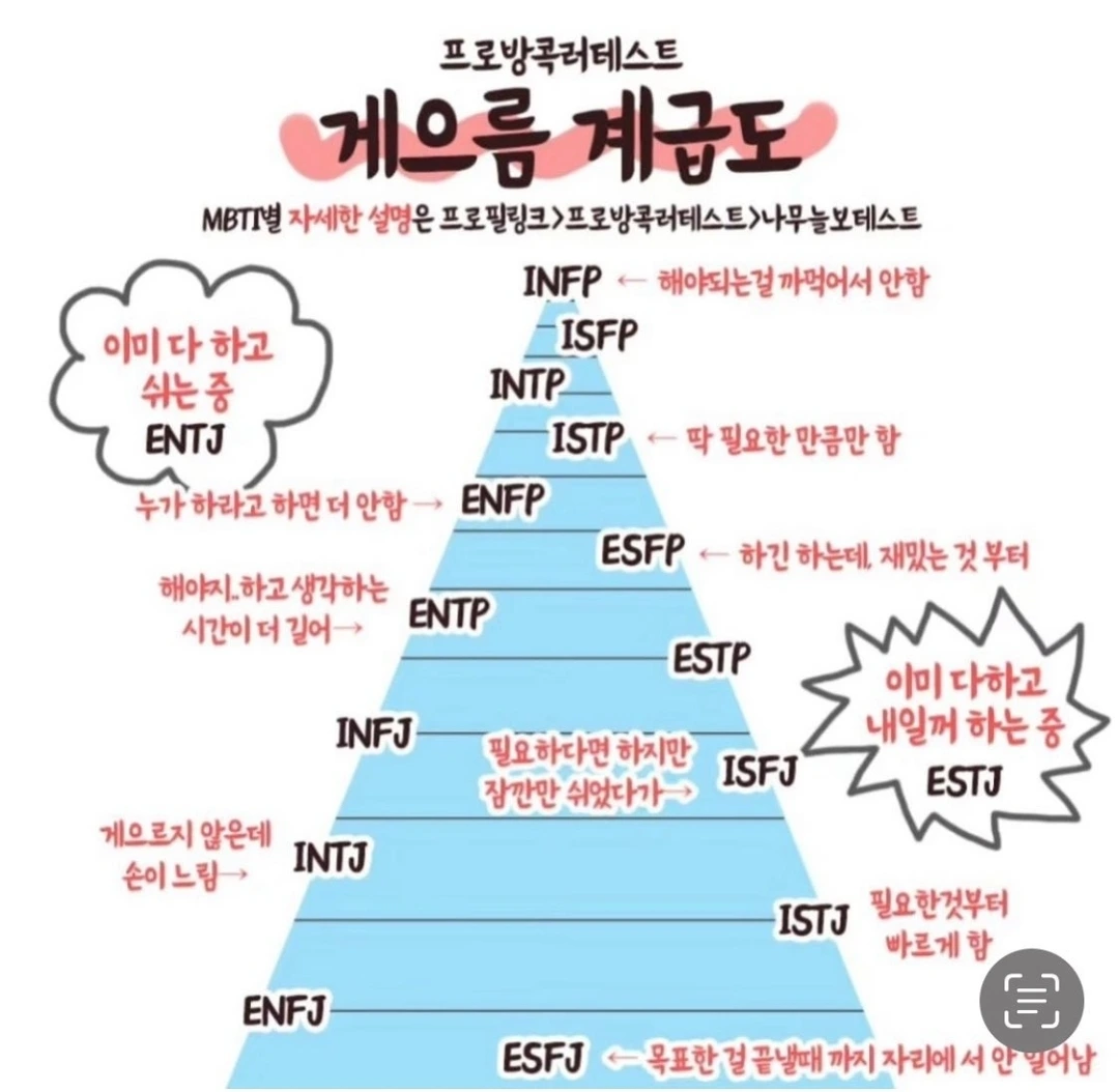 재미로 가져와본 떠도는 게으름 계급도. 나는 하라고 하면 더 안하는게 맞는 것 같다. 하하.