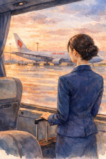 이른 아침, 나는 Air China 브리핑에 참여했다.