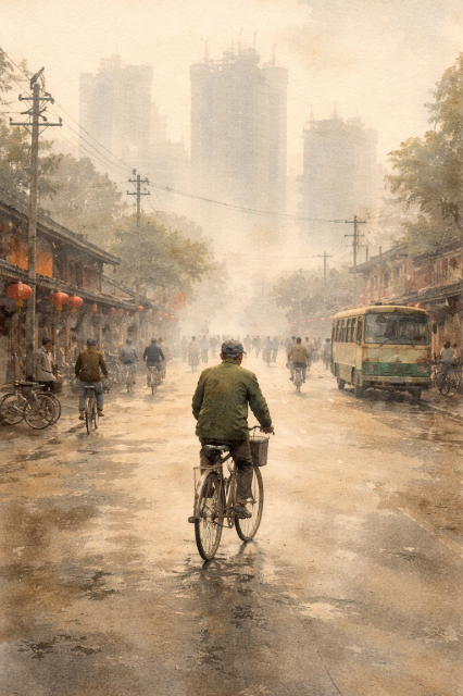 햇빛은 있었지만 선명하지 않았고, 건물들은 완성되지 않은 골격처럼 어딘가 비어 있었다. 골목을 가로지르는 자전거 바퀴는 느린 리듬으로 굴러갔고, 사람들은 그 리듬에 맞춰 하루를 시작했다.