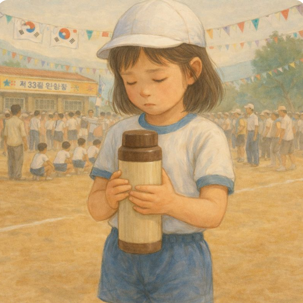 “운동회 날, 우여곡절 끝에 타 간 커피가 든 보온병을 안고 있던 나.”