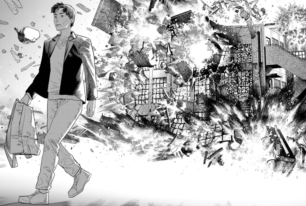 태풍의 악마를 죽이고 난 뒤 나오는 만화책 표지 연출도 인상 깊었다. 태풍의 악마가 튀긴 피가 페인트처럼 변하며 체인소 맨 만화책 표지 그림체로 화면이 순간 멈춘다.