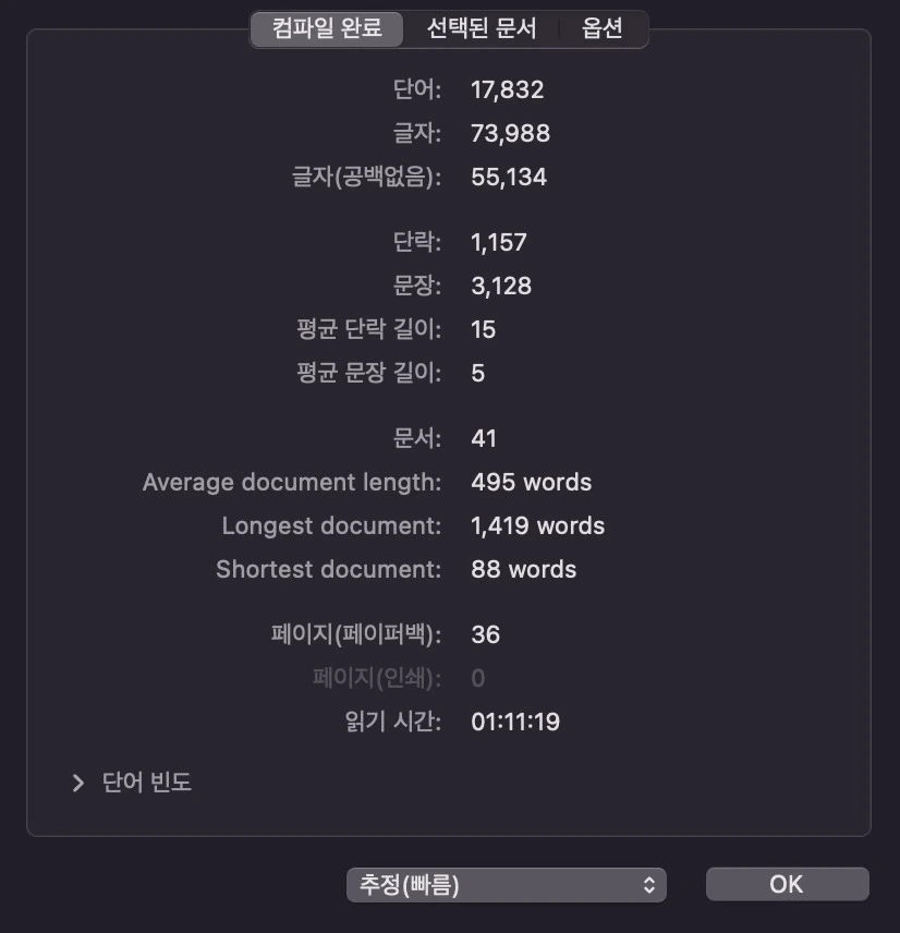 전역한 뒤로 게임, 유튜브, 독서, 글쓰기만 반복하며 시간을 보냈다. 그리고 마침내, 소설 초고를 다 썼다. 정확히 말하자면 추가 장면을 몇 개 더 써야 하지만, 몇천 자 안 되는 양이라서 퇴고할 때 쓰려고 한다.