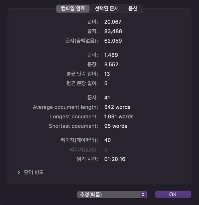 2차 퇴고를 끝냈다. 초안은 7만 4천 자였고, 1차 퇴고 후에는 8만 자였던 놈이, 이제 8만 4천 자가 되었다. 거의 1만 자를 추가로 썼다. 분명 지운 것도 많았는데. 왜 이렇게 많이 늘었는지 진짜 모르겠다. 이 정도면 아슬아슬하게 장편소설이라고 불러도 되지 않나.