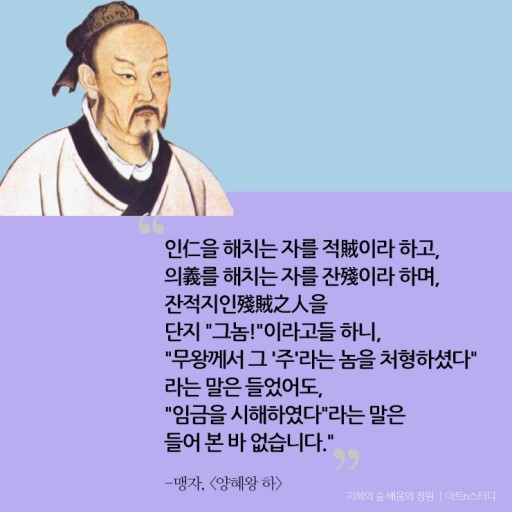 제나라 선왕(宣王)이 묻는다. "탕왕(湯王)이 걸(桀)을 내쫓고, 무왕(武王)이 주(紂)를 정벌했다고 하던데, 그런 일이 있었습니까?"