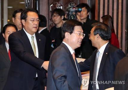 연합기사 사진보니 정진석 손잡고 이정현 밝게도 웃고 있다. 간만에 웃을 일 생겨 좋은가 보다.