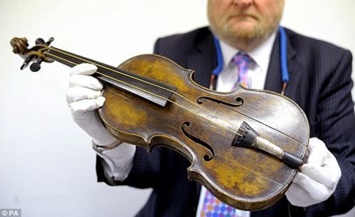 그 바이올린은 타이타닉이 출항하기 며칠 전 마리아 라는 이름을 가진 약혼녀가 건넨,