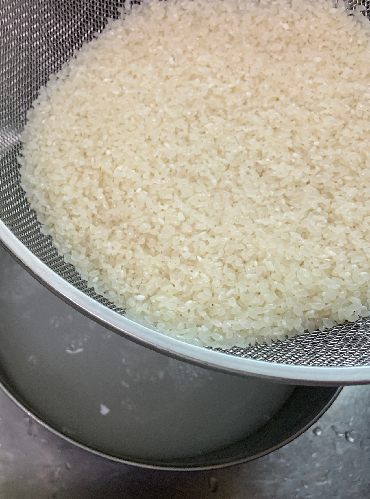 쌀을 씻는 도구로 눈을 돌리게 된 것은 이런 과정들을 거치고 나서였다. 쌀을 씻는 전문 도구인 이 제품의 이름은 스텐 채반볼 세트다. 이 도구를 사용하면서 알게 된 쌀 씻기의 요령은 최대한 짧은 시간에 쌀알에 상처를 내지 않게 가볍게 쌀을 씻는 것이다. 쌀을 씻는 시간보다 더 중요한 것은 쌀이 물과 접촉하는 시간이다. 이 세트는 이러한 요령대로 쌀을 씻는 데 최적화된 도구인 듯 하지만 크기가 맞는 볼과 채반의 조합이라면 어떤 것을 사용하든 상관이 없을 것 같기는 하다.