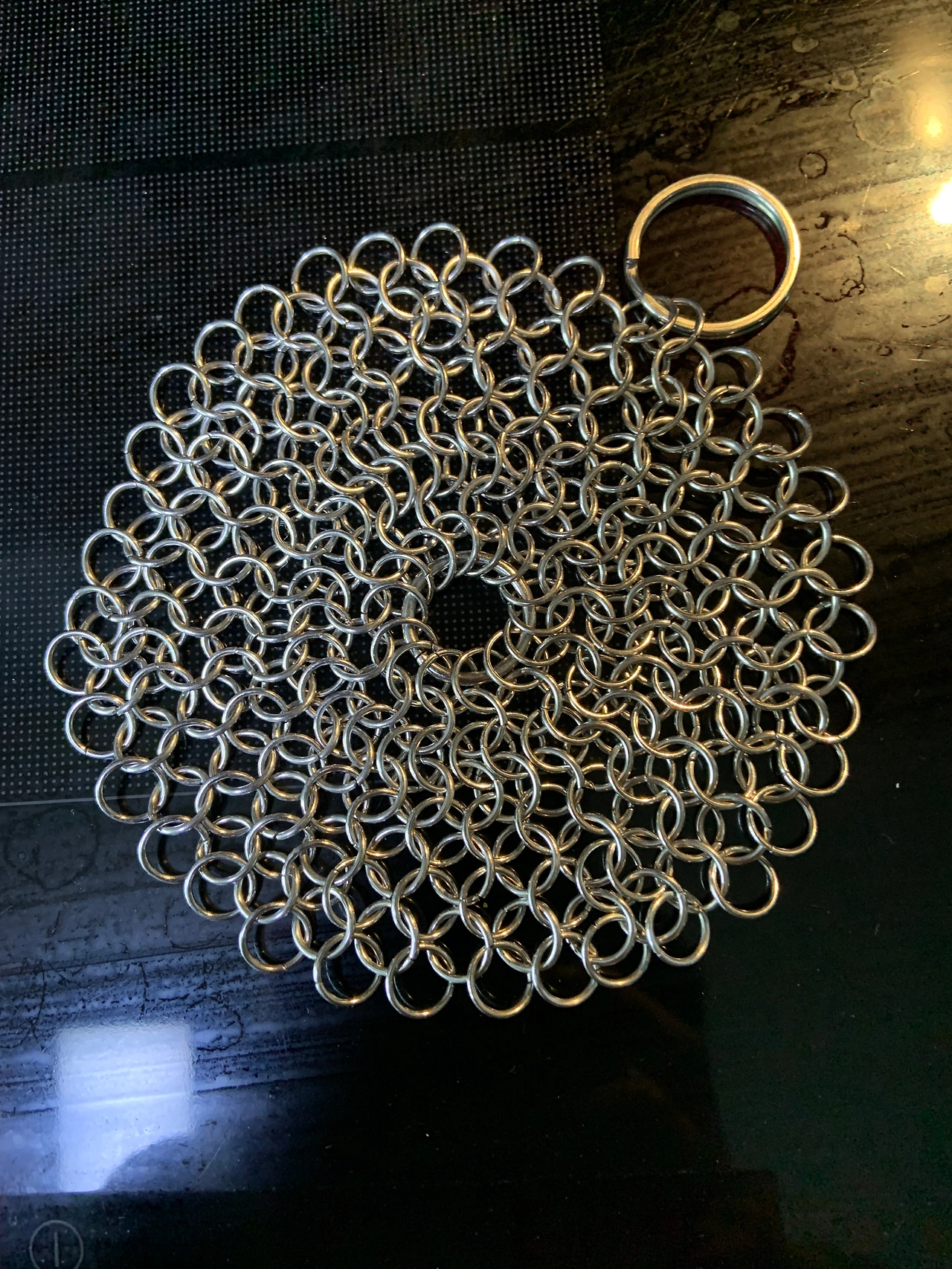 이런 모든 단점들이 스테인리스를 너무 잘게 가공해서 일어나는 것이라면 이렇게 가는 형태가 아니라 좀 더 굵은 모양으로 만들 수는 없는 것일까 생각하게 되었다. 그러다 이미 그런 제품이 있을 것 같다는데 생각이 미쳤는데 아니나 다를까 이런 제품이 이미 존재하고 있었다. 많은 사람들이 사용 후기를 통해 링 수세미를 칭찬하고 있었다. 쇠수세미처럼 효과가 강력하다는 후기들도 많았는데 실제 사용을 해 본 결과 쇠수세미에 비해 오물을 제거하는 강도는 조금 떨어진다.
