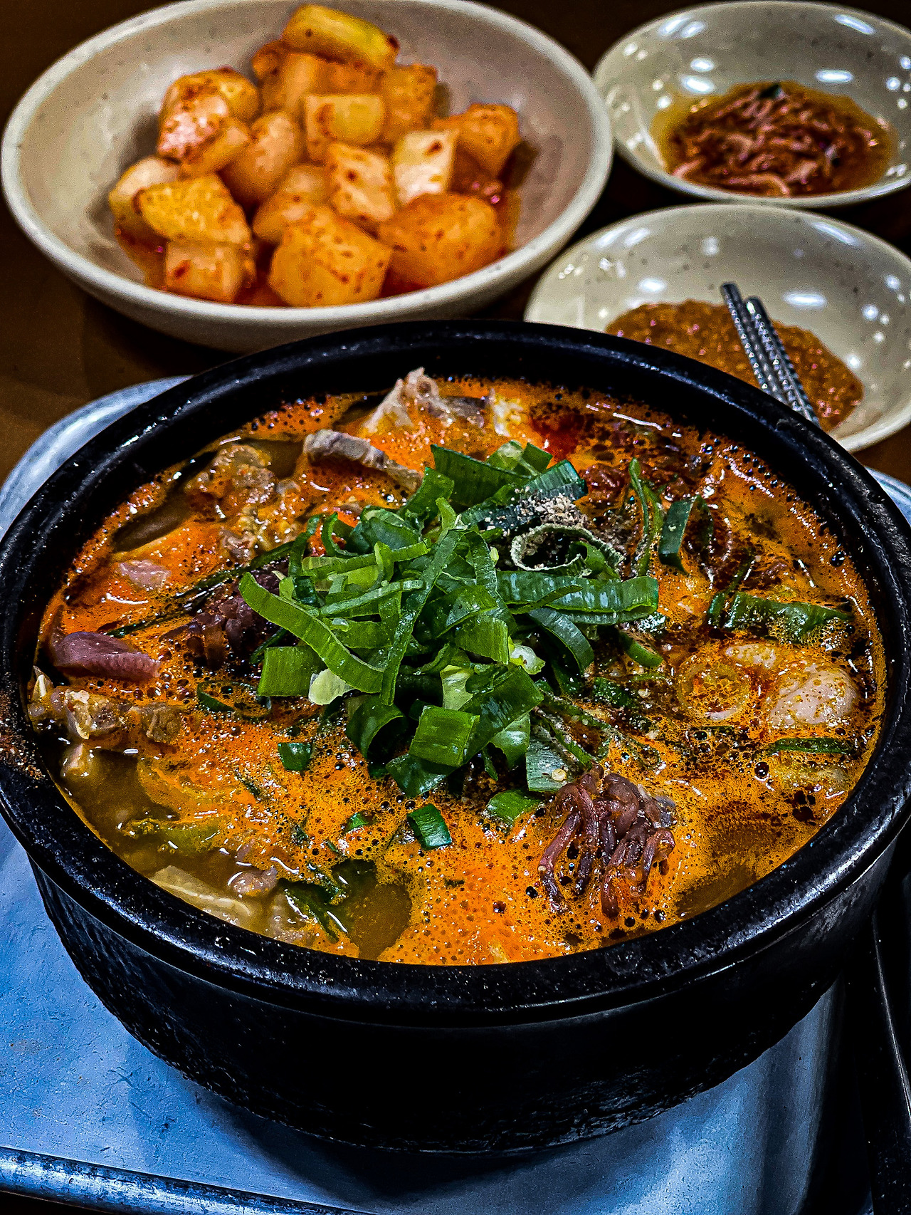 파가 잘 올려진 팔팔 끓어 나오는 국밥 한 그릇을 테이블 위에 얹어 올렸다. 지금까지 먹어왔던 여의도의 [화목순대국]이 아들의 공간의 맛이라면 광화문은 어머니가 해준 느낌이다. 아들의 가게가 결코 가볍다는 건 아니지만 국밥에 온도, 국물의 끓는점이 조금 다르다고 느껴졌다. ‘엄마’는 더 알차고 실한, 한 수저 더 뜨라고 말해주는 것처럼 (특)이 아니라도 차고 넘치는 양과 더 진한 풍미에서 깊이감의 미묘한 차이를 느꼈다. 여의도를 세 번 이상 방문했고 모든 종류의 옵션을 선택해 본 후에 광화문에 오길 잘했다는 생각이 들었다.
