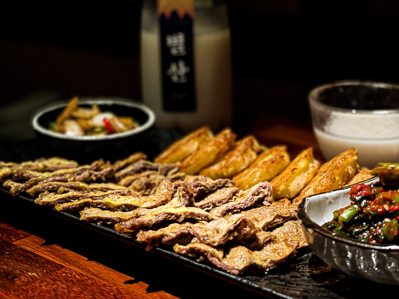 비교적 괜찮은 가격에 많이 마실 수 있는 배부른 탁주, 곡주, 막걸리라는 이미지보다, 오늘만큼은 亂臣賊子(난신적자)가 되지 않겠다고 다짐하는, 그동안 꽤 마셔왔다던 사람들에게도 마음가짐을 벼려야 하는 장소이며, 소화능력처럼 선천적인 이슈를 제외하고 분위기와 상황 속에서 곡주에 오해가 있어 왔던 사람에게 취향을 찾아가기 적합한 장소다. 그동안 와인만이 가져왔던 고상한 취향의 이미지를 막걸리에서, 나아가 ‘우리 술’에서 비교적 포만감과 함께 이색적인 시간을 제공하는 공간이라는 점에서, 탐구적, 체험의 시간에 도전해 볼 만한 가치가 있다. <육전>에 <갓김치>가 함께 나온다. 그 이상 무슨 말이 필요하겠는가.