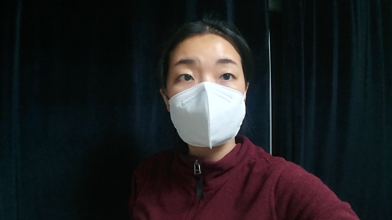 오늘 얼굴 상태가 말이 아니라 집이지만 마스크를 쓰고 인증 사진을 찍었다. 후후 마스크 덕분에 그건 좋네.