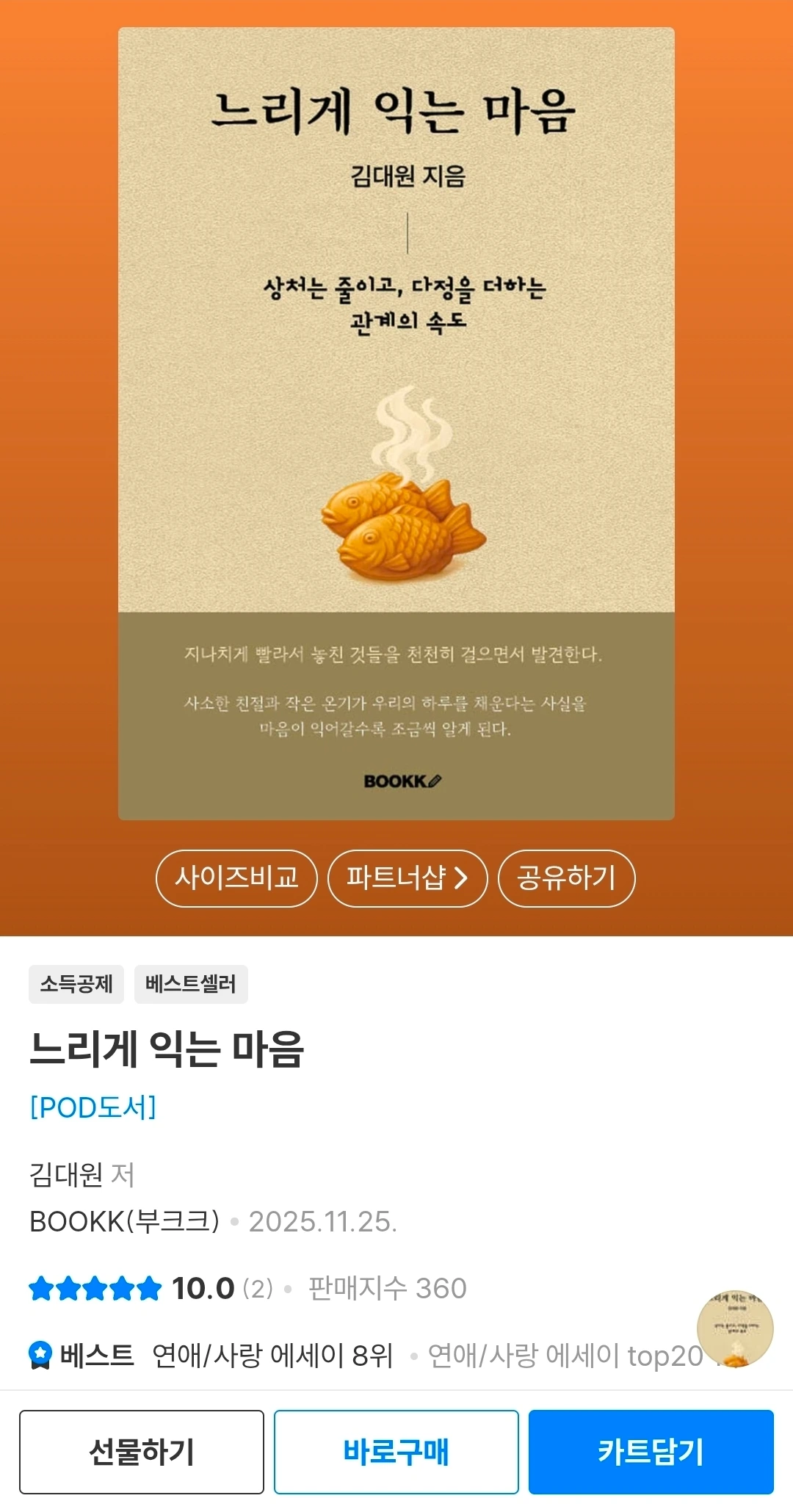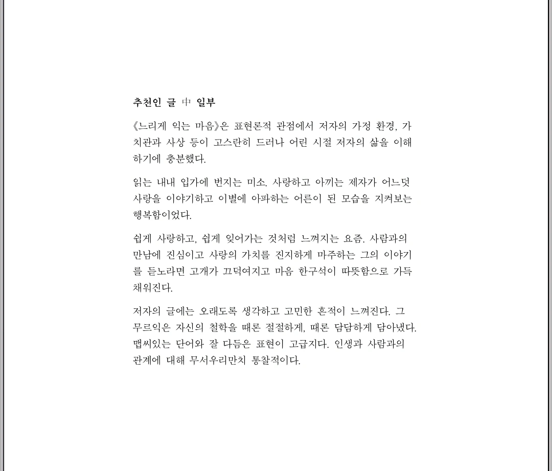 최근 제가 출판한 책 《느리게 익는 마음》은 yes24, 알라딘에서 종이책 및 전자책으로 만나보실 수 있습니다. 많은 관심 부탁드립니다. 감사합니다.