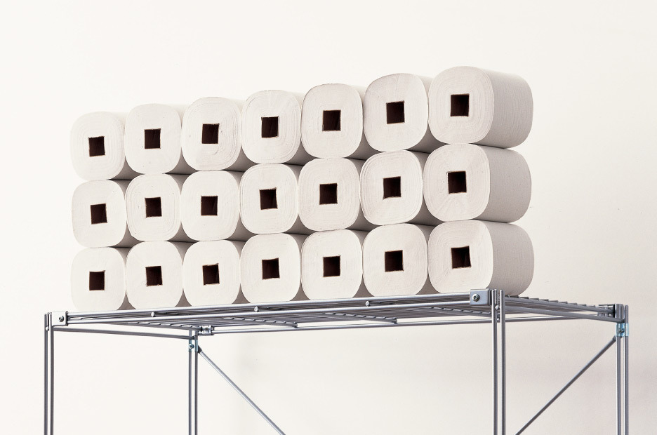 그중에서 건축가 반 시게루가 맡은 휴지 디자인은 이번에도 베스트다. ㅇ형의 심지를 ㅁ으로 바꾸었을 뿐인데, 적재 효율면과 메시지면에서 모두 훌륭한 휴지가 탄생했다. 휴지를 당길 때 저항음이 발생함으로써 사용자에게 "당신은 휴지를 뽑아 쓰고 있다." 상기시키는 이 휴지는 자연히 자원 절약으로 이어질 터다.