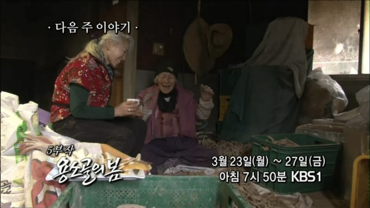 농원 주변에는 겨우내 굳었던 땅을 뚫고 봄나물들이 나오기 시작하고, 하나둘 꽃봉오리들도 올라오고 있었습니다. ‘봄이 왔네’ 하며 봄의 기운을 느끼며 즐거워하는 가족들을 보며 꼭 이 가족 같다는 생각이 들었습니다. 지난 시절, 고되고 어려웠던 시집살이가 할머니 인생에 겨울이었다면, 지금 딸들과 함께 즐겁고 행복하게 지내는 시간들이 어쩌면 겨울이 지난 봄일 수 있겠다는 생각이 들었습니다. 삶의 곁을 내어주며 함께 사는 딸들이 있고, 농원을 이어가겠다고 나선 손자가 있고, 그래서 노래가 흥얼흥얼 끊이지 않는 인수 할머니의 삶은 지금이 봄일 수 있겠다 싶었던 거죠.
