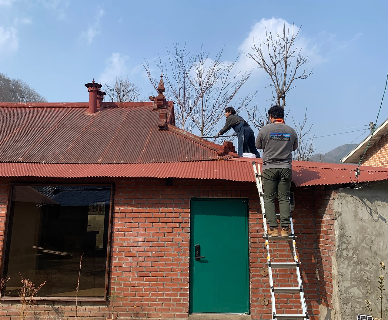 그리고 또 한 쌍의 젊은 부부가 성현 님의 집 바로 인근의 빈집을 매입해 입주를 위해 리모델링을 진행하고 있었습니다. 공사가 들어간 빈 집. 마을에 사시는 어르신들이 젊은 부부가 온 걸 반기며 공사가 한창인 집에 찾아오셔서 말을 건네십니다.