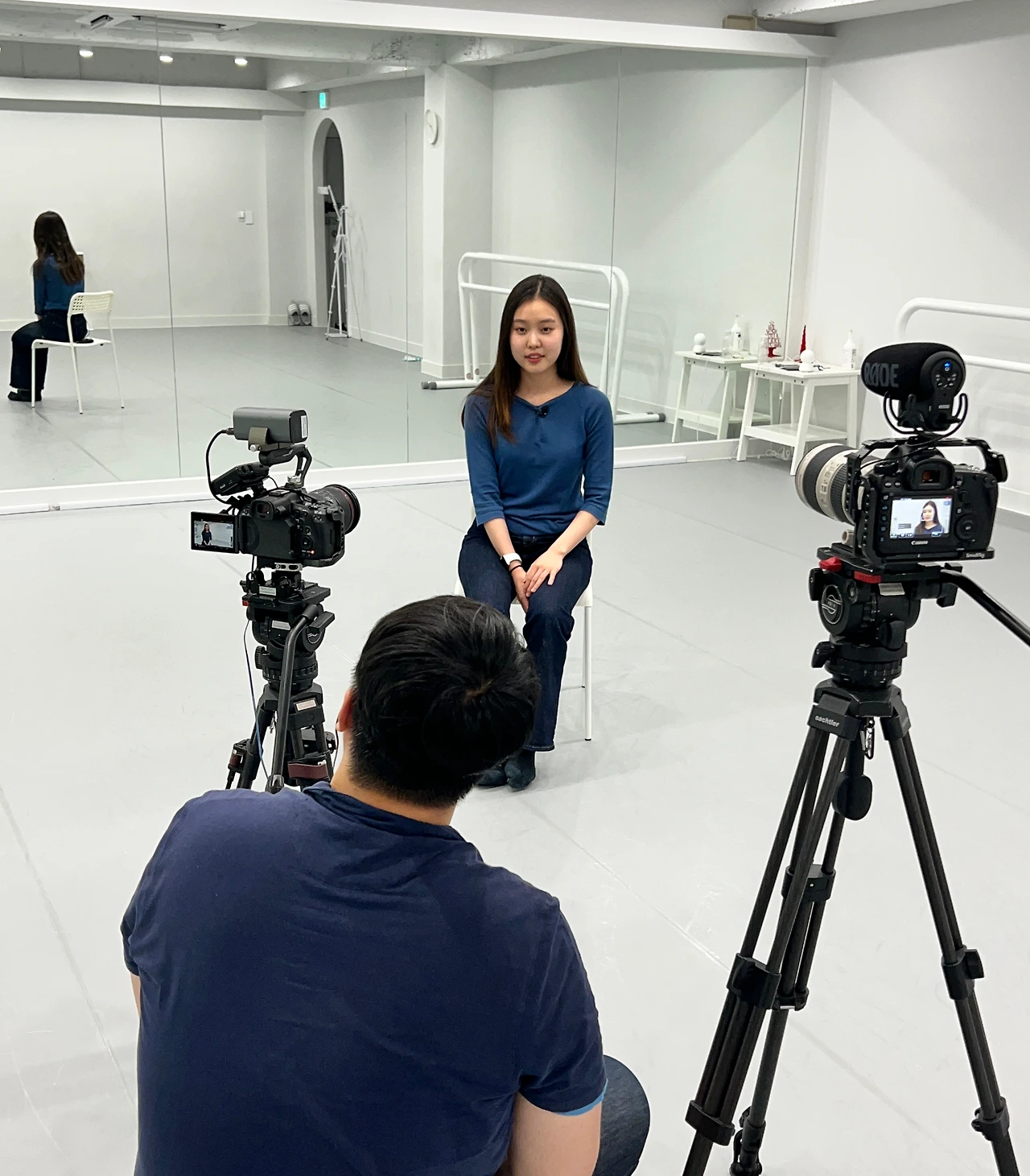 촬영은 하루 동안 서울과 수원 캠퍼스를 오가며 수업 전 준비 과정과 수업 시간을 촬영했습니다. 그리고 교수님과 주인공 학생을 인터뷰 해서 이야기의 척추를 만들어갈 준비를 했습니다. 무용을 하는 학생이어서 연습실 한 곳을 빌려서 무용 연습을 하는 장면도 촬영을 했습니다. 아무튼 하루 남짓한 시간을 최대한 활용해 촬영하기 위해 애썼던 프로젝트였습니다.