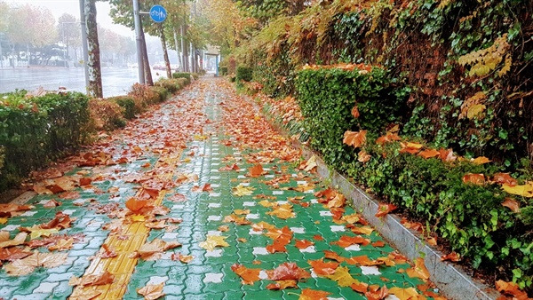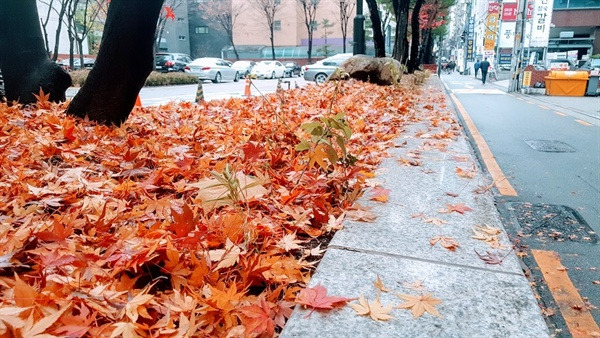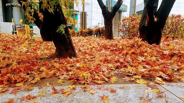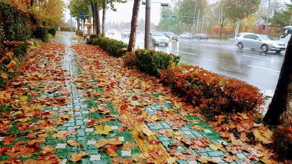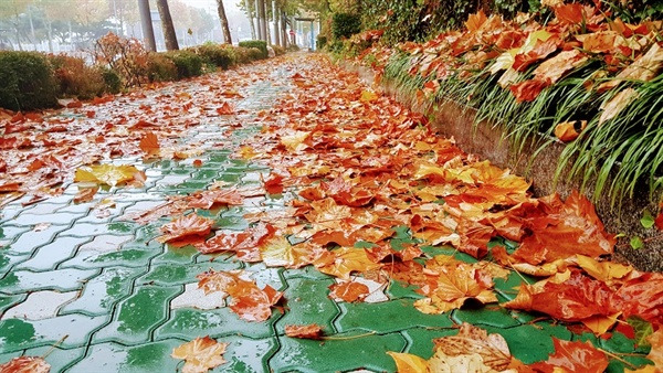 지난 주말은 가을 치고는 제법 많은 비가 왔습니다. 울긋불긋 화려했던 오색단풍이 하늘에서 지상으로 무겁게 내려앉았습니다.