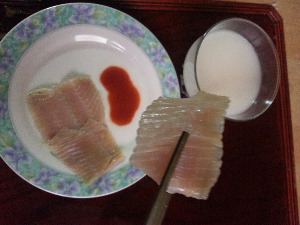 그렇게 그날 우리는 홍어회는 물론, 돼지고기와 김치 그리고 홍어를 함께 곁들여 먹는 삼합, 고추장과 식초, 설탕, 참기름등의 양념장에 미나리와 홍어를 버무려 무친 홍어무침으로 홍어 파티를 신나게 열었답니다.