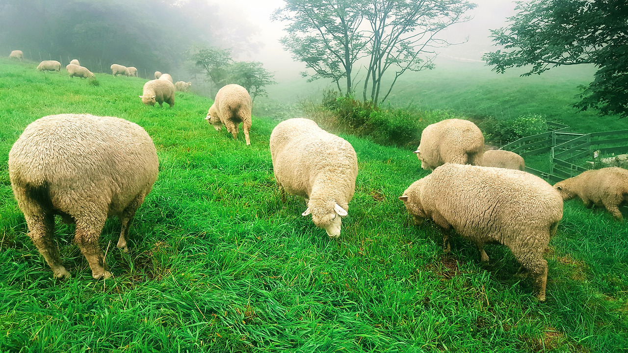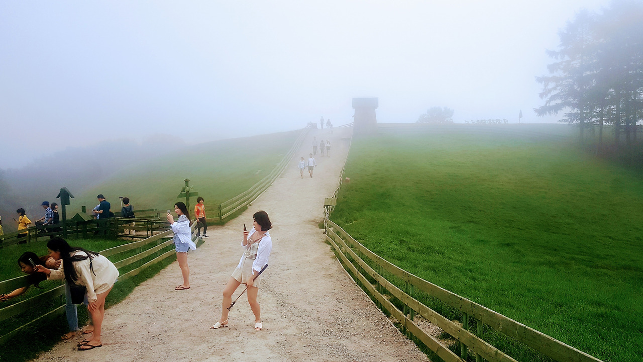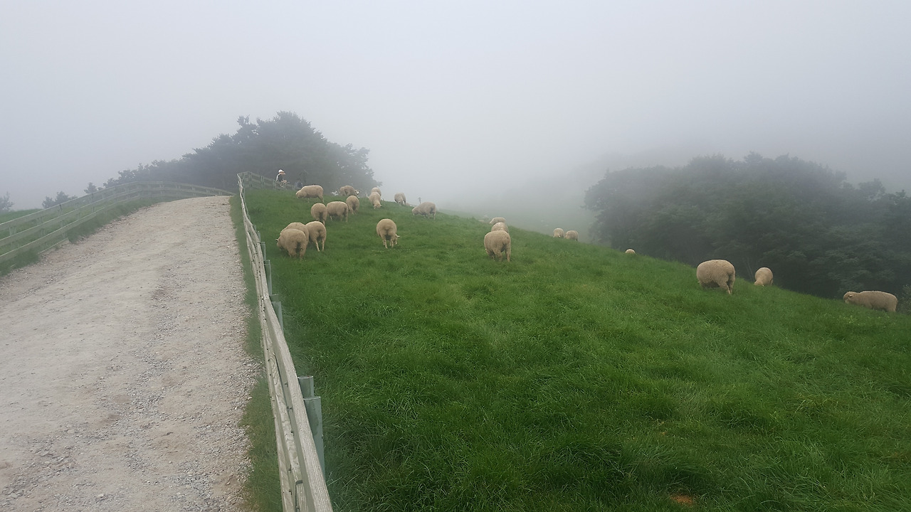그곳에 도착하니 우리 일행을 먼저 반기는 것은 짙게 깔린 안개였다. 목장이라 하면 높은 푸른 하늘에 새하얀 뭉게구름이 유유자적 떠다닌다. 그 아래로 넓게 펼쳐진 푸른 초원위에 한가로이 풀을 뜯고 있는 양떼들의 풍경이다. 이런 모습을 보고 싶어 하는 게 보통이고, 그 모습이 아름다운 건 부인할 수 없는 사실이다.