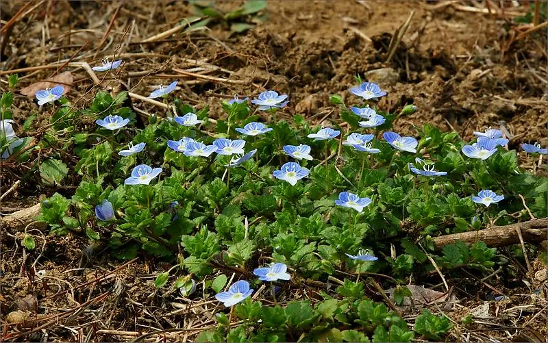 학명은 Veronica persica. 페르시아의 베로니카. 베로니카는 성경에 나오는 여인으로 나중 성녀가 된 이름인데요. 무거운 십자가를 지고 골고다 산의 형장을 향해 가던 예수님의 얼굴에 흐르는 땀을 자신의 손수건으로 닦아준 주인공입니다. 그 손수건에서 예수님의 얼굴 형상이 나타나는 기적이 일어났고, 그것으로 황제의 불치병을 낫게 했다지요.