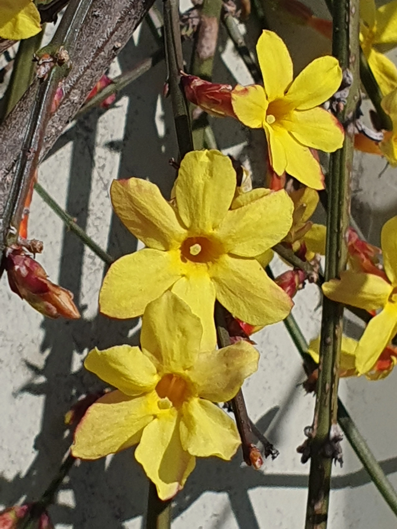 개나리보다 3주 정도 앞서 피는 영춘화. 꽃잎이 6장이라 4장인 개나리와 쉽게 구분할 수 있다.