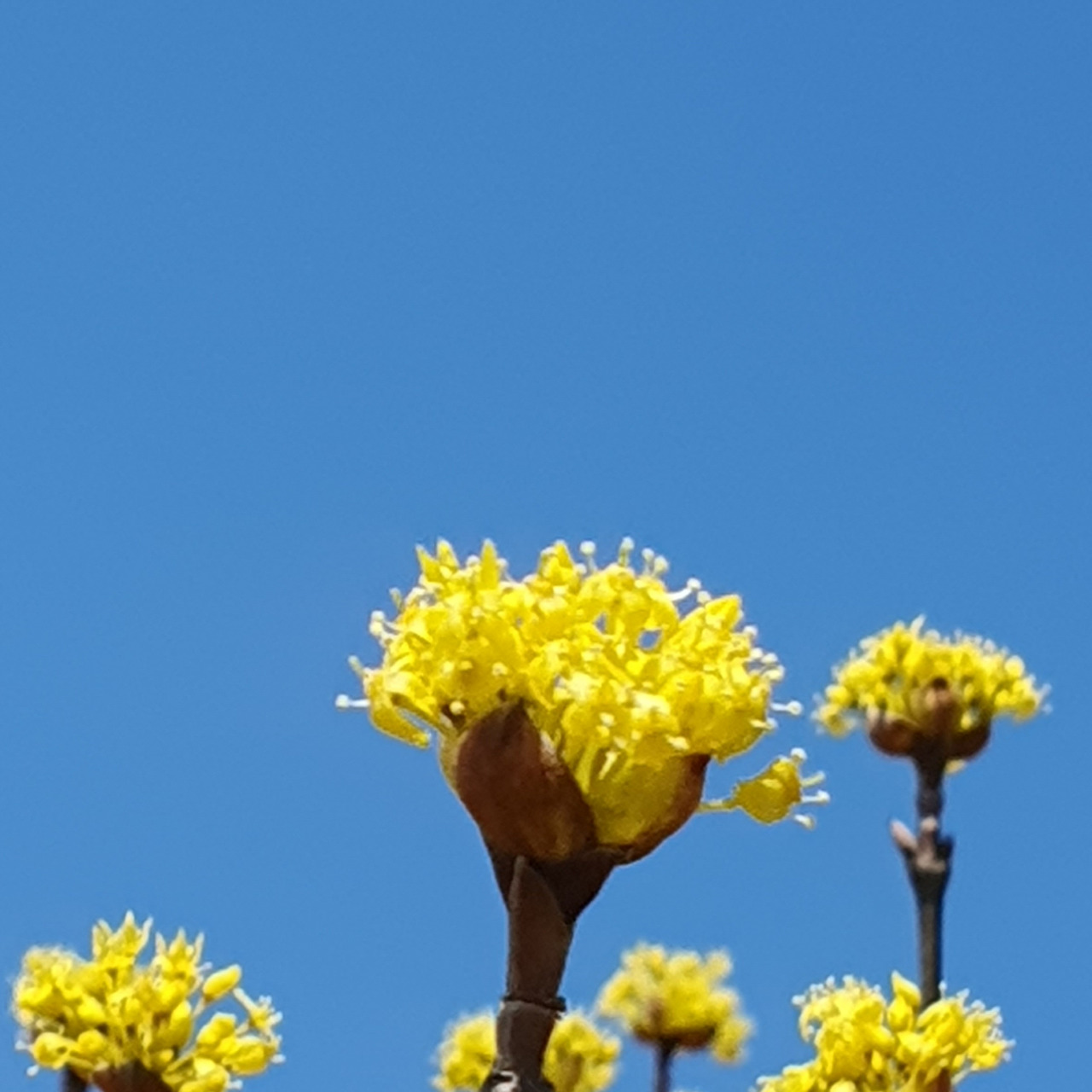 산수유 꽃. 한 송이 안에 꽃들이 20~30 개 들어 있다.