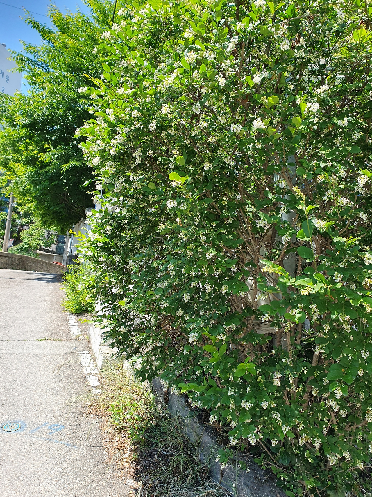 우리동네표 쥐똥나무. 전지하지 않아 자연 상태로 자란다. 골목길을 진한 향기로 채워 금방 느낄 수 있다.