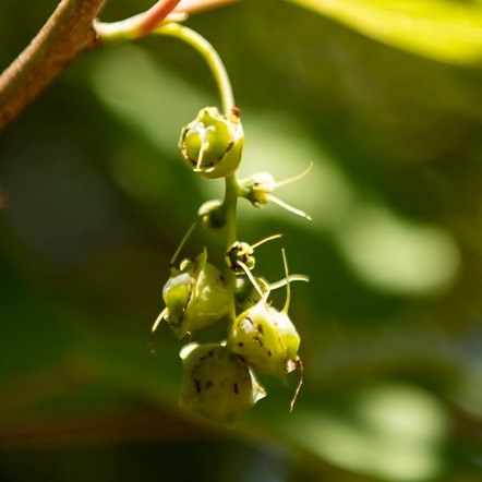 8~12개의 꽃이 총상꽃차례로 아래를 향해 달리죠. 꽃이삭은 길이 3∼4cm이지만 꽃이 핀 다음 7∼8cm로 자란대요. 꽃에 달린 포는 안쪽과 가장자리에 털이 많아요. 5장의 꽃잎 속에 2 개의 암술대와 5개의 수술이 있어요.