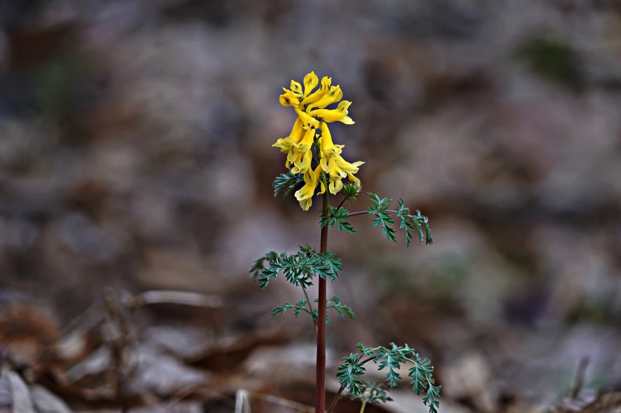 산의 그늘지고 습한 곳에서 노란 등불을 밝히듯 서 있는 산괴불주머니. 사진= 들꽃사랑연구회