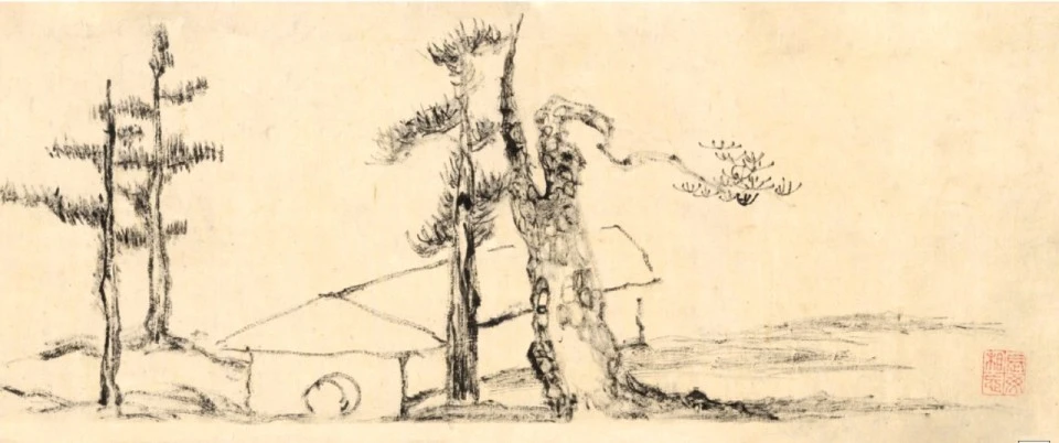 추사 김정희의 세한도. 맨오른쪽은 소나무임이 분명하다. 나머지 세 그루는 잣나무가 아니라 제주 자생 곰솔 혹은 측백나무로 추정된다고 한다.