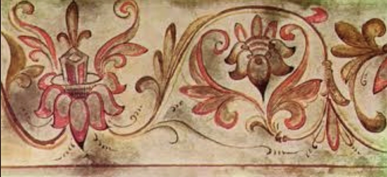 인동당초문. 덩굴과 꽃이 뻗어나가면서 끊임없이 지속되는 문양이다.