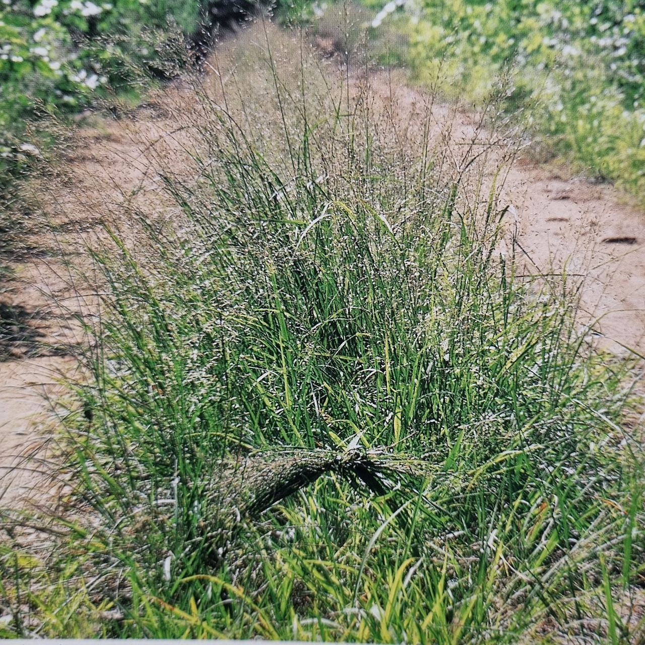 결초보은의 주인공 그령. 길을 따라 자란다. 사진 앞쪽은 그러매어 올가미를 만든 모습. 사람은 물론 소나 말도 걸리면 앞으로 고꾸라진다.