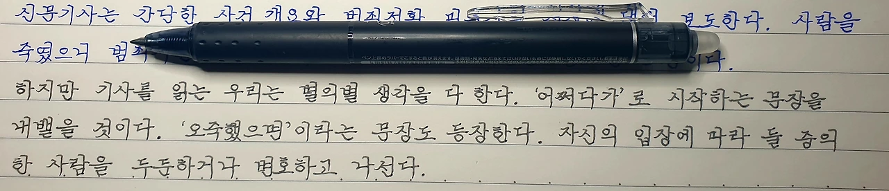 구독과 알림 설정을 했다면, 매일 밤 라이브 필사가 시작되면 쉽게 참석할 수 있다. 10분~15분 정도 분량만 쓰기에 버겁지 않다. 느린 속도로 진행하기에 뒤처질 염려가 없다. 책 내용을 공유하기에 번거롭지 않다. 얼굴 모르는 필우들과 함께하기에 부담이 없다. 가지런한 글씨를 볼 수 있기에 도움이 된다. 화려하지 않은 평안한 몇 분을 보낼 수 있다. 즐거운 필사가 모토이기에 쉽게 수긍이 된다.