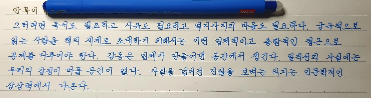 반복과 연습으로 기초 공사를 탄탄히 한 후에 재주를 부리자. 내 눈에 먼저 와닿아야 한다. 내 손이 아프지 않은 글씨가 우선이다. 편안한 자세에서 나오는 글씨라야 한다.