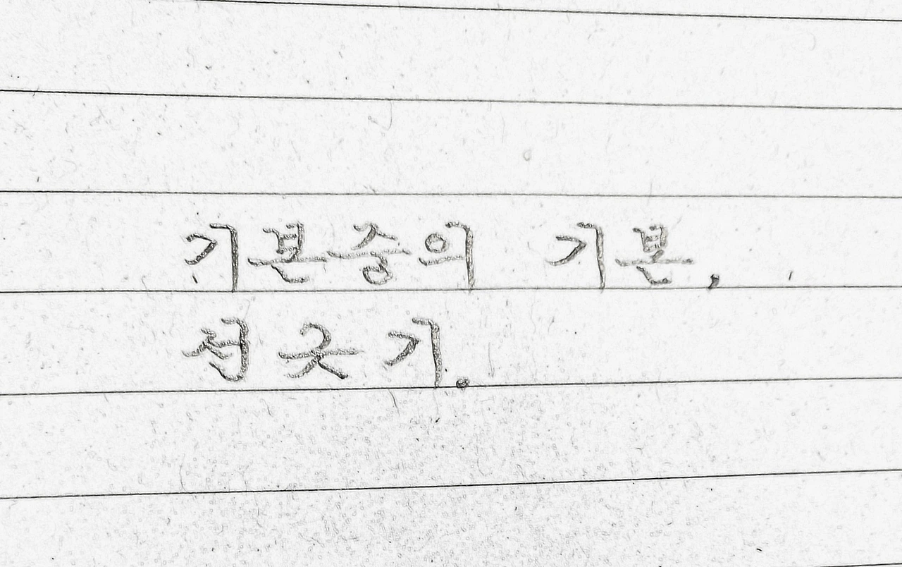 악필 탈출을 원하는 이에게도 ‘시작’은 중요하다. 좋은 시작이 완전한 성공을 늘 보장하지는 않지만, 교정을 어떻게 시작하는 것이 바람직한가에 대한 고민은 꼭 거쳐야 하는 과정이다. 만약, 궁서체 (정자체, 흘림체)를 향해 글씨 교정의 길을 떠나는 자가 있다면, 오늘 나의 짧고 빈약한 글이, 그 길의 출발선에 놓인 디딤대가 되길 바란다.