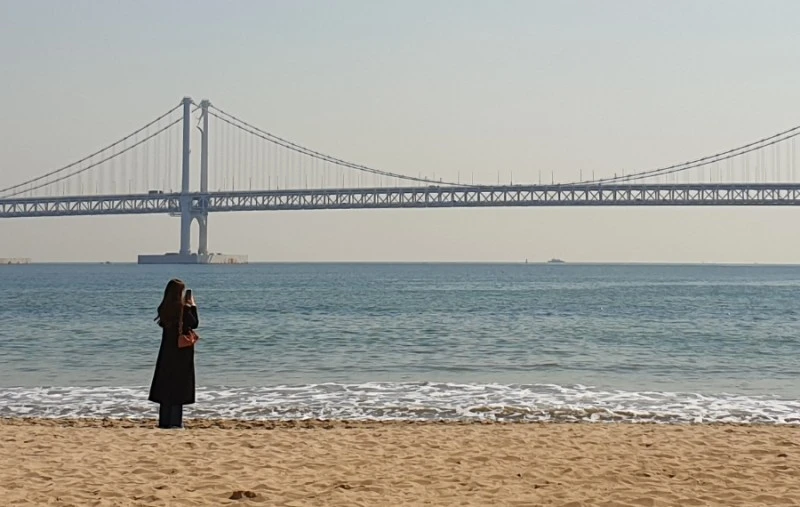 광안 대교는 2003년에 지어졌다. 사람으로 따지면 성인이다. 그와 평행선을 이루고 있는 해변을 걸으면서 그가 되어 보았다. 20년 동안 한자리를 묵묵히 지켜온 변하지 않는 존재였다. 자신을 향해 내뱉는 수많은 환호와 하소연들을 들어주었다. 모든 방문자의 친구였고 동반자였고 상담사였다. 모든 것을 감싸며 자신의 자리를 지켰다. 아무런 편견과 차별 없이 모두에게 자신을 배경으로 내어주며 평생을 서 있었다. 자신의 본분도 게을리하지 않았다. 매일 수천 대 차들이 안전하게 목적지에 가도록 파도를 견디며 지탱해 왔다.