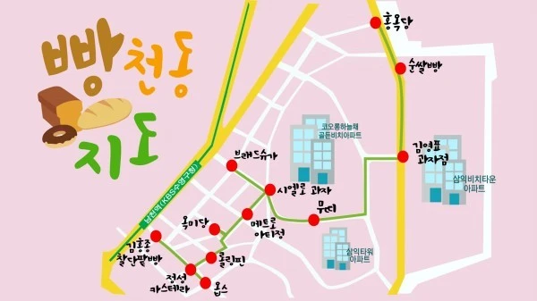 남천동은 '신세계' 영화 중 최민식의 대사로 큰 유명세를 치렀지만, 원래 부산의 부촌으로 유명한 곳이다. '빵천동'이라 하여 빵집 거리로도 이름이 알려져 있다. 갓 구운 빵을 사서 바다로 향하면 식기 전에 광안리 모래사장에 닿을 수 있을 만큼 광안리 바다가 가깝다.