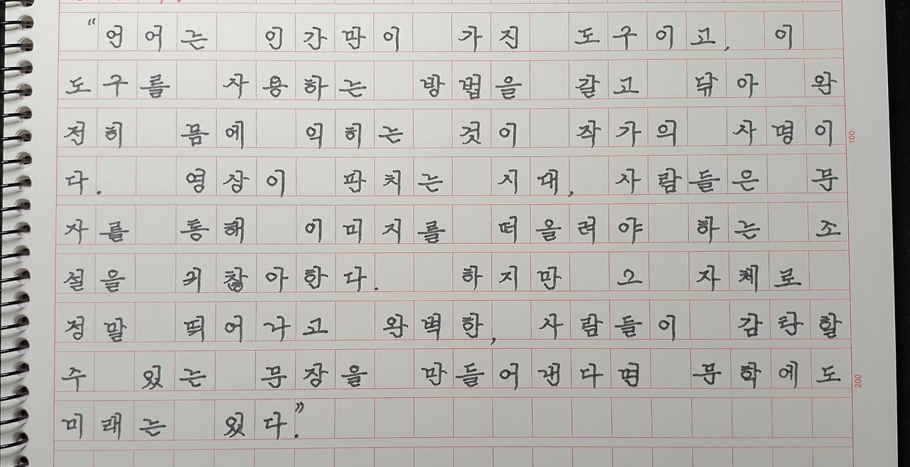 사람들이 감탄할 수 있는 문장을 만들어낸다면 문학에도 미래는 있다.”